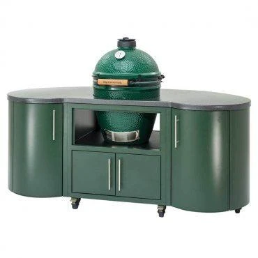 Designed and engineered to work perfectly with your Big Green Egg for years of enjoyment! The 76 inch Custom Cooking Island provides an impressive working surface. It features a heavy duty sliding shelf and high-quality aluminum and steel construction. Solid stainless door pullsDurable, weather resistant powder coated finishStorage cabinet with a heavy-duty sliding shelfIncludes locking castersPaper towel rackLifetime warranty Works with Universal EGG Cover J XL Item code: 121301L Item code: 121295