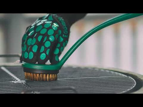 Big Green Egg s all-natural Palmyra Grill Brushes feature durable palm bristle pads that easily – and safely – clean even the messiest cooking grids .